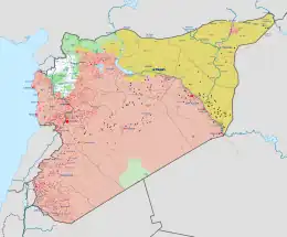 De son côté, la Russie entre dans le conflit syrien en septembre 2015 en intervenant militairement pour soutenir le régime syrien. Cette intervention redonne l'avantage au camp loyaliste : l'armée syrienne et ses alliés remportent des victoires décisives à Alep en décembre 2016, à Homs en mai 2017, à Deir ez-Zor en novembre 2017, dans la Ghouta en mai 2018 et à Deraa en juillet 2018.