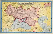 En 1922, la guerre civile russe touchait à sa fin en Extrême-Orient et les communistes proclamèrent l'Union des républiques socialistes soviétiques (URSS) comme fédération de la Russie, de l'Ukraine, de la Biélorussie et de la Transcaucasie. Le gouvernement soviétique ukrainien était presque impuissant face à un appareil monolithe centralisé du Parti communiste basé à Moscou. Dans le nouvel État, les Ukrainiens ont d'abord joui d'une position de nation titulaire pendant les périodes d'indigénisation et d'ukrainisation. Cependant, en 1928, Joseph Staline avait consolidé son pouvoir en Union soviétique. Ainsi, une campagne de répression culturelle a commencé, culminant dans les années 1930 lorsqu'une famine massive, l'Holodomor, a frappé la République, faisant plusieurs millions de morts. La partie de l'Ukraine sous contrôle polonais a connu un sort différent : il y avait très peu d'autonomie, tant sur le plan politique que culturel, mais elle n'a pas été affectée par la famine. À la fin des années 1930, les frontières intérieures de la RSS d'Ukraine ont été redessinées, mais aucun changement significatif n'a été apporté.
