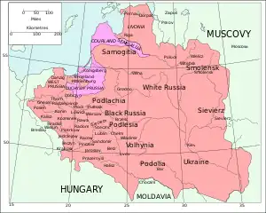 - « Pologne » pris ici dans le sens de « union polono-lituanienne », et non pas de « royaume de Pologne ».
