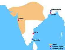 En Inde, la situation est aussi conflictuelle mais les deux puissances coloniales ne possèdent que des comptoirs et, sur ce théâtre d’opérations éloigné, elles doivent jouer avec leurs versatiles alliés du sous-continent indien.