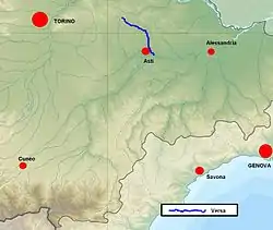 5. Les sources anciennes désignent souvent cette ville sous le nom français de Nice : il s'agit de Nice en Montferrat, à ne pas confondre avec la ville éponyme du comté de Nice, alors possession du duc de Savoie.