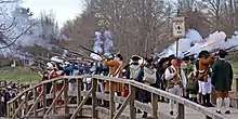 Dans les colonies britanniques du Nouveau Monde, le concept de milice est apparu très tôt afin d’assurer la survie des jeunes établissements lors des conflits contre les Amérindiens[23]. La première milice est formée en Virginie en 1632. Elle repose sur un recrutement local et de courtes périodes de service actif lors d’urgences. Tout homme capable de porter une arme doit l’apporter à l’église et s’exercer après le service religieux[23]. En 1682, le lieutenant-gouverneur de New-York reçoit des ordres pour créer une milice afin de repousser toutes tentatives d’invasion de la colonie en armant et en enrôlant ses habitants[23].