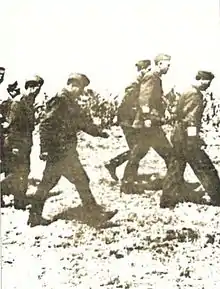 Des personnes fidèles au PCY ont ensuite été nommées à la tête du RC avec Lazar Koliševski comme secrétaire[62]. Il a été envoyé en septembre à Skopje. La nouvelle direction a commencé la formation de détachements partisans. Des insurgés armés du détachement partisan de Prilep ont attaqué les zones occupées de l'Axe dans la ville de Prilep, notamment un poste de police bulgare, le 11 octobre 1941[62]. Cette date est considérée comme le début symbolique de la Résistance macédonienne, qui a commencé au plus tard par rapport aux autres républiques yougoslaves, où elle a commencé en juillet[63]. Le détachement Prilep a été actif jusqu'en décembre 1941, date à laquelle il s'est divisé en trois groupes – le premier à Skopje, le deuxième à Tikves et le troisième à Bitola. Cependant, en novembre, le nouveau chef du RC - Koliševski a été arrêté et condamné à mort par un tribunal militaire bulgare. Il a adressé deux recours en grâce au tsar bulgare et au ministre de la Défense, insistant sur son origine bulgare. En conséquence, sa peine de mort a été commuée en réclusion à perpétuité et Koliševski a été envoyé dans une prison à Pleven, en Bulgarie.