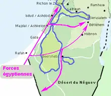 | Sud profond et Hébron | 1 500 | 4 000 Égyptiens |