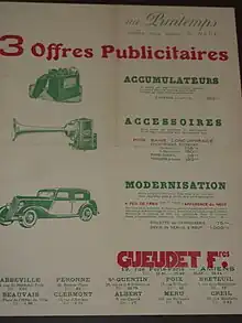 En 1920, Gustave Gueudet signe un premier contrat de distribution avec Louis Renault. Les deux hommes se sont rencontrés sur une route de Picardie alors que Gustave Gueudet intervenait pour dépanner Louis Renault dont le véhicule était immobilisé pour cause de problèmes mécaniques.