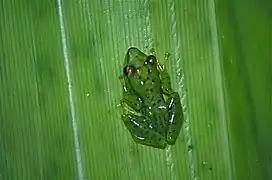 Embryons de Guibemantis pulcher sur une plante du genre Pandanus.