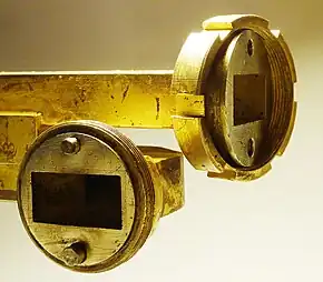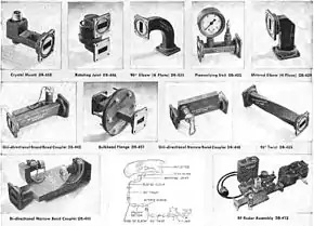 Un guide d'ondes est un dispositif autrefois toujours métallique, aujourd'hui éventuellement constitué de polymères[4], permettant la propagation d'ondes par réflexions multiples à la manière d'une fibre optique.