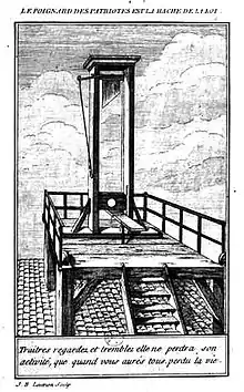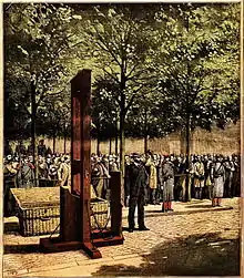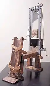 La guillotine est une machine de conception française, inspirée d’anciens modèles de machines à décapitation, et qui fut utilisée en France pour l’application officielle de la peine de mort par décapitation, puis dans certains cantons de Suisse, en Grèce, en Suède, en Belgique et en Allemagne. En France, la guillotine fut utilisée du , place de Grève à Paris, au [1], à la prison des Baumettes à Marseille, et fut remisée définitivement, après l’abolition de la peine de mort en 1981, au fort d'Écouen dans le Val-d'Oise.