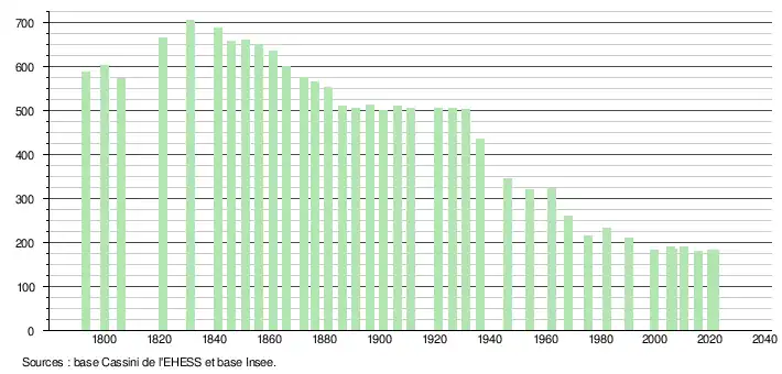 - Population municipale légale en vigueur au 1er janvier 2024, millésimée 2021, définie dans les limites territoriales en vigueur au 1er janvier 2023, date de référence statistique : 1er janvier 2021.