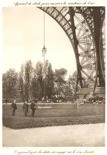 1. L'appareil de chute permettait de mesurer la traînée des corps lors d'une chute depuis le premier étage de la tour Eiffel.