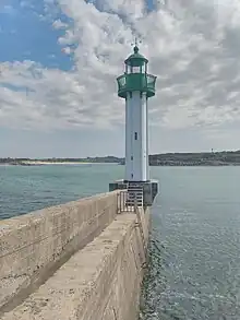 • Le premier, en , est installé dans le port d'Honfleur, déplacé en 1948 au Havre puis déplacé en 1960 dans le port de Moguériec (Finistère)[32]. Le phare a été totalement rénové et réinstallé le  ;