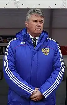 Guus Hiddink en 2012 avec l'Anji Makhatchkala. | ||