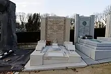 Les corps des fusillés de Châteaubriant sont d’abord répartis, par groupes de trois, dans les cimetières des communes environnantes[44]. Celui de Guy Môquet au Petit-Auverné à quinze kilomètres au sud. La population a interdiction d’approcher les tombes, mais une note de la sous-préfecture adressée aux familles, indiquant les lieux d'inhumation, précise que s'il est interdit de déposer des plaques mentionnant le nom des fusillés, il est permis de fleurir les tombes[44]. Les 27 tombes sont fleuries dès le par le fils d'Henri Barthélémy[45],[44], un des fusillés. Une semaine plus tard, à la Toussaint, les tombes de Guy Môquet et de ses deux autres compagnons sont abondamment fleuries de bouquets de fleurs bleues, blanches et rouges (une couleur pour chacune des trois tombes, celle de Guy Môquet est au centre). Florence Aubenas, journaliste, en a rendu compte en recherchant des témoins locaux[46]. Les familles ont pu récupérer les corps après la guerre[47]. Le corps de Guy Môquet est transféré au cimetière du Père-Lachaise (division 97)[48].