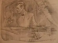 Récital de piano sous les caméras de la Télévision française. Bernard Gavoty, qui présentait l'émission, observe de loin. Cziffra joue ici la Ronde des Lutins de Liszt :