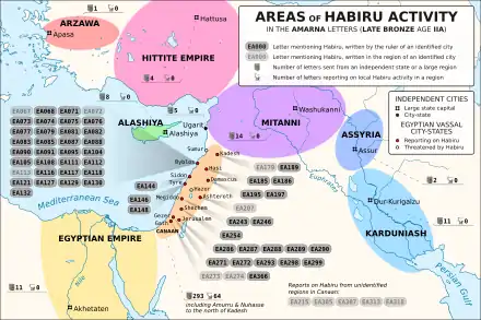 En 1886, on découvrit dans les Lettres d'Amarna datées du XIVe siècle av. J.-C. les premières mentions des Apirou dans la correspondance d'un roi de Canaan qui demande assistance au pharaon égyptien contre des bandes assaillant ses villes. Un vif débat eut lieu sur la possibilité d'un rapprochement avec le terme biblique « Hébreux », `bry. Certains recherchent alors l'origine du terme dans le mot akkadien ḫabiru, aussi attesté sous les formes ḫapiru et ʿapiru, qui désigne des populations déclassées, vagabondes, vivant aux marges des sociétés urbaines du Proche-Orient antique et notamment à Canaan (voir Apirou).