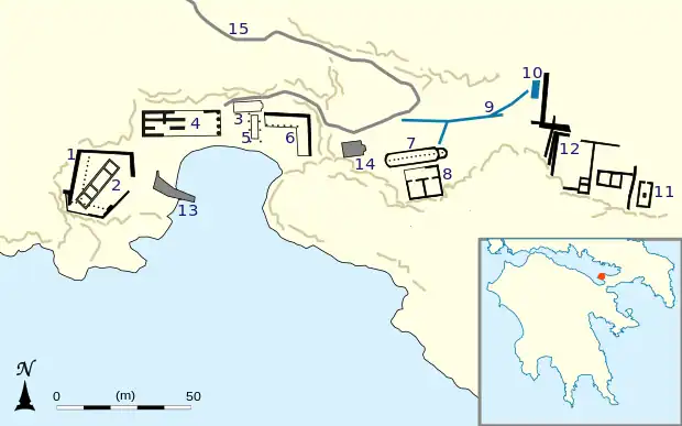 Stoa (6), temple d'Héra Acraia (4).