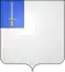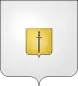 Sur le blason : Un écusson d'argent en abîme à l'épée d'azur en pal renversée d'azur[7]. Ornements extérieurs : Deux palmes d'argent, nouées en sautoir, d'un ruban de pourpre, entourant l'écu. |