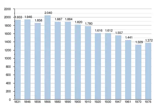 - Sources : INS, Rem. : 1831 jusqu'en 1970 = recensements, 1976 = nombre d'habitants au 31 décembre.