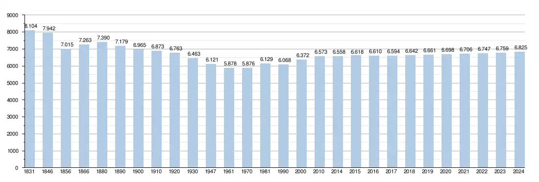 Les chiffres des années 1831 à 1970 tiennent compte des chiffres des anciennes communes fusionnées.