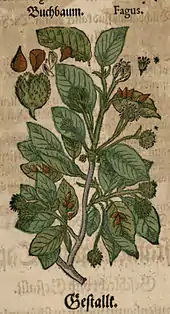 Fagus par Pietro Andrea Mattioli, Kreutterbuch de Johan Feyerabendt (1590).