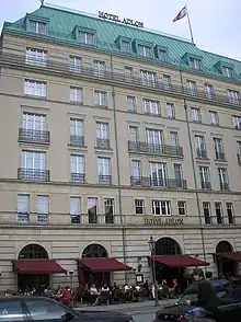 Lorenz Adlon fait donc construire à cet emplacement l'hôtel Adlon, sur les plans des architectes Carl Gause et Robert Leibniz[1]. Le 23 octobre 1907, l'hôtel Adlon est inauguré en présence de l'empereur Guillaume II[2], de l'impératrice, et d'une partie de la cour. Ils expriment leur gratitude à Lorenz Adlon d'avoir mené à bien ce projet. L'hôtel Adlon a une capacité de 450 lits, avec restaurant et divers salons. Dès les premières années, Lorenz Adlon réussit à en faire l'un des hôtels les plus connus et les plus courus du monde. Les familles de la haute noblesse vendaient leurs résidences berlinoises, préférant résider en hiver dans les suites luxueuses et bien chauffées de l'hôtel, comme Guillaume II. Le ministère des Affaires étrangères utilisait l'hôtel comme « pension de famille non officielle », car il n'avait pas de résidence appropriée pour héberger les visiteurs étrangers de haut rang. Situé au cœur du quartier des services du gouvernement et à côté des ambassades de Grande-Bretagne (en), de France et des États-Unis, l'hôtel Adlon fut également très prisé des journalistes et des reporters internationaux des grands journaux.
