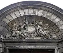 La façade qui donne sur la rue Vieille-du-Temple offre un arc en plein cintre qui entoure un bas-relief représentant deux renommées, deux divinités ailées, sculptées par Thomas Regnaudin (1660 ; on lui doit aussi la Galerie d'Apollon, au Louvre). Ce ne sont pas des anges mais l'avatar des « déesses aux cent yeux et aux cent bouches », armées de « divines trompettes », les fameuses trompettes de la renommée. La porte d'entrée est également ornée de têtes de Méduse, jeunes femmes à la chevelure de serpents. Côté cour, le fronton est aussi décoré : en sculpture se trouvent les fondateurs de Rome, Romulus et Rémus, en compagnie de leur louve nourricière.
