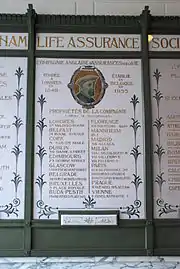 Il est orné d'un grand panneau Art nouveau intitulé « The Gresham Life Assurance Society Limited » et constitué de plaques de marbre blanc enchâssées dans un cadre de bois peint en vert foncé.