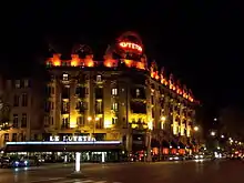 L'hôtel éclairé de nuit.