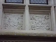 Les armes des Valois sont omniprésentes dans la décoration de l'hôtel. Ce blason, entouré du cordon de l'ordre de Saint-Michel, orne la cheminée de la grande salle.