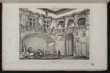 La première cour de l'hôtel, aménagée en 1530, est l'œuvre du maître-maçon toulousain Louis Privat[24]. Elle forme un carré presque régulier de 9 mètres de côté environ et d'une superficie totale de 88 m². Les façades, sur les côtés nord et est s'élèvent sur deux étages. La richesse du décor et l'emploi abondant de la pierre, matériau luxueux à Toulouse par sa rareté et son prix sur le marché local, affichent la richesse du propriétaire[25]. L'utilisation de l'ordre corinthien, véritable nouveauté dans la ville et dont le dessin est largement tiré du traité d'architecte Medidas del Romano de l'architecte castillan Diego de Sagredo, sert à mettre en scène la puissance de Jean de Bernuy.