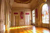 Le salon d'honneur, ancienne salle de bal, conserve un parquet marqueté avec la blason de la ville. Le vitrail est l'oeuvre de Steinheil et représente Aliénor d'Aquitaine confirmant la charte de commune en 1199. Parmi les échevins à droite, on reconnait un autre portrait: celui de l'architecte Antoine-Gaétan Guérinot qui regarde le spectateur. Le plafond est orné par un tableau de Jean-Baptiste Brunet: Du Guesclin délivrant Poitiers des Anglais en 1372 (1885).