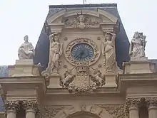 Au fronton des pavillons latéraux sont sculptées des allégories de L’Industrie et La Science vis-à-vis de L’Histoire et des Beaux-Arts[4]. Le fronton de l’aile gauche est l'œuvre de Louis Duthoit, et le fronton de l'aile gauche est celle d'Athanase Fossé.