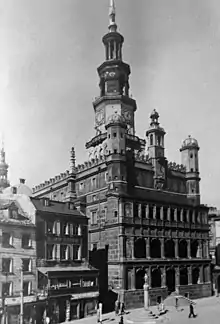 Il s'agit pour être précis d'un Ratusz (à l'image des Ratusha russes ou des Rathaus allemands), ce qui implique la présence systématique d'une tour. Celui de Poznań est une fusion des styles du Nord et du Midi puisqu'il présente la particularité d'avoir été reconstruit en partie au XVIe siècle après un incendie par l'Italien Jean di Quadro. Sa façade ouest est ornée de trois étages de loggias ; au-dessus, une plate-forme embellie d'un attique de style polonais soutient un campanile carré qui devient ensuite octogonal, lui-même surmonté d'une flèche ornée d'un aigle perché à 70 mètres du sol[1].