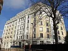 Immeuble en angle aigu de huit étages, avec les trois derniers en retrait, il est construit en béton dans un style Art déco. L'entrée se situait alors rue de Nîmes (actuelle rue du Maréchal-Lyautey), protégée par une grande marquise. Le hall, le salon et la salle à manger étaient ornés de fer forgé, de vitraux dont certains de Francis Chigot et de luminaires de même style[1].