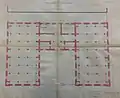 Le corps de bâtiment central comprend au rez-de-chaussée un grand vestibule avec le logement de concierge, une bibliothèque ainsi qu'une pièce pour le dépôt et l'arrivée de nouveaux papiers. L'escalier d'apparat, mène à une grande salle de lecture où le public pouvait consulter les documents, et le cabinet de l'archiviste. Deux salles pour le dépouillement et le classement se trouvent également à cet étage. Le second étage est occupé par le logement de l'archiviste.