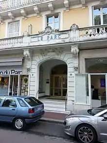 Un avocat parisien, Joseph Bousquet, qui s'était retiré à Vichy, fait construire à l'angle de la rue du Parc et de la rue Petit, devant le parc des Sources, un hôtel baptisé « hôtel du Parc »[1]. Il est haut de trois étages, dont le dernier mansardé. À sa mort, en 1877, son fils Emmanuel en hérite. L'année suivante, il décède à son tour ; les héritiers revendent l'hôtel à Mme Larbaud Saint-Yorre, mère du poète Valery Larbaud[1]. La famille Germot continua d'en assurer la gérance. L'allure de l'hôtel n'avait pas changé depuis sa construction si ce n'est l'installation de l'électricité dans toutes les chambres[1].