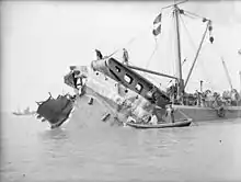 L'épave est restée debout sur le fond marin, seuls le pont et le canon avant étant visibles à marée haute. Seul un blindage déformé au milieu du navire maintenait les deux sections principales de l'épave ensemble et il a été coupé par des explosifs lorsque le sauvetage a commencé peu après le naufrage. Les deux moitiés ont été soulevées par des pontons, et ont ensuite été démantelées séparément : 750 tonnes longues (760 t) de ferraille et 38 tonnes longues (39 t) de métaux non ferreux ont été récupérées entre juin 1940 et février 1944[5].