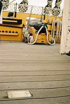 Une plaque commémorative sur le pont du navire, rappelle l'endroit où Nelson a été mortellement blessé par un franc-tireur français. Cette plaque illustre l'admiration que le peuple britannique voue à l'amiral Nelson.