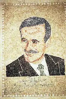 Le régime met également en place un culte de sa personnalité, le décrivant comme un dirigeant juste, sage et puissant de la Syrie et du monde arabe en général. À la manière soviétique, ce culte se traduit par un vaste système de propagande fait notamment d'affichages de son effigie, d'érections de statues, de discours publics glorificateurs. Le slogan « Assad pour l'éternité » s'installe au fil des plébiscites pour l'unique candidat devenu despote (99,2 % des suffrages officiellement en 1971, 99,6 % en 1978 et 99,9 % en 1985)[36].