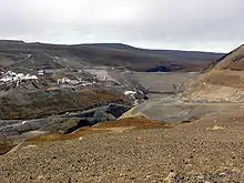 La partie non ennoyée de la Hafrahvammagljúfur en 2010 vue depuis le barrage de Kárahnjúka. | ||