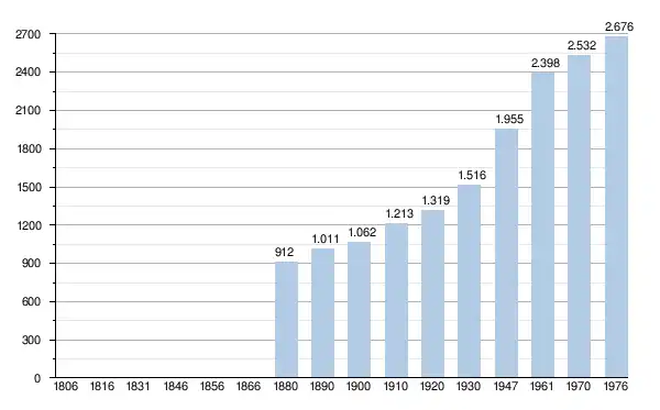 - Sources : INS, Rem. : 1831 jusqu'en 1970 = recensements, 1976 = nombre d'habitants au 31 décembre[3].