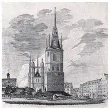 Le Moritzburg demeura la résidence principale des archevêques de Magdebourg jusqu’en 1680, et c’est ainsi que le cardinal Albert de Brandebourg y passa l’essentiel de son existence. Lorsque la Réforme toucha Halle, il emmena avec lui sa cour et tous les objets d’art de la cathédrale, pour les mettre en sécurité à Mayence et Aschaffenburg. Son protégé Hans von Schönitz, qui habitait dans les mines (Kühlen Brunnen) près du marché, commença le ravalement des deux églises sur la place du Marché. De 1530 à 1554 les basiliques romanes Sainte-Gertrude et Sainte-Marie furent rasées et entre les deux tours restantes (la « Tour Bleue » et la « Hausmannsturm ») on édifia l’église de la Marktkirche, comportant elle-même quatre tours ; cet édifice marque la transition entre l’architecture gothique et l’architecture de la Renaissance. Tombé en disgrâce pendant les travaux, Hans von Schönitz fut incarcéré plusieurs années dans les geôles du château fort de Giebichenstein avant d'être exécuté. Or, non seulement les bourgeois furent excédés par cette exécution arbitraire, mais ils étaient scandalisés par la vie de sybarite que menait l’archevêque Albert. Martin Luther, qui condamnait pour des motifs moraux et religieux les dépenses inconsidérées, le trafic des indulgences et l’avidité maladive d'Albert de Brandebourg, prit la tête de la contestation.