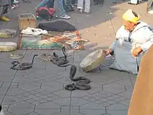 Lors des cérémonies de la « Haḍra », organisées chaque année le jour du « Mawlid » l'anniversaire du Prophète, les Issawi montrent la diversité de leurs dignités. Mais à Jemaa El Fna, il se contentent de soumettre les serpents à leurs lois, les défiant au son envoûtant de la musique de la « Ghaita ». Mais derrière le désir de divertir, se cache un profond respect du Issawi pour ses serpents[2].