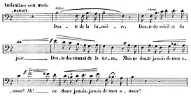 L'air le plus connu de cet opéra est celui issu de la scène de folie (« À vos jeux, mes amis ... Et maintenant ») qui s'achève sur la mort d'Ophélie (Acte IV). Cet air virtuose est régulièrement interprété en récital.