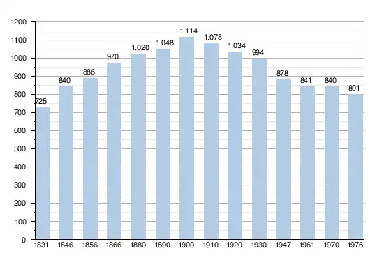 - Sources:INS, Rem:1831 jusqu'en 1970=recensements, 1976= nombre d'habitants au 31 décembre