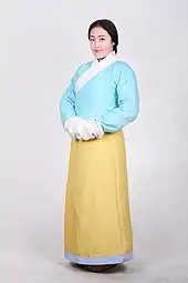 Il diffère de la robe qipao (旗袍, ) et de la veste tangzhuang (唐裝, ), habits d’origine mandchoue introduits sous la dynastie Qing, souvent considérés comme les vêtements chinois typiques.