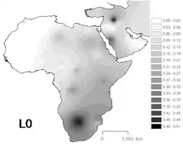 L0 se trouve principalement en Afrique subsaharienne. Il atteint sa fréquence la plus élevée dans le peuple khoïsan, à 73 % en moyenne. Certaines des fréquences les plus élevées se trouvent en Namibie (!Xun, 79 %), en Afrique du Sud (Khwe/!Xun, 83 %), et au Botswana (!Kung, 100 %).