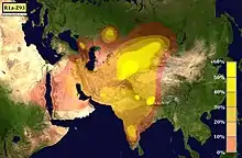 Le R-Z93* ou R1a1a1b2* (R1a1a2* chez Underhill (2014)) est commun (> 30%) dans la région de l'Altaï sud-sibérien, en Russie, apparaissant au Kirghizistan (6 %) et dans toutes les populations iraniennes (1 à 8 %).