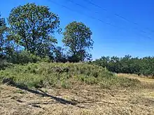 Bord de Roanne : la tache brunâtre représente une résurgence de saumure ayant détruit la totalité de la flore.