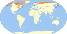 Originaire de Terre-Neuve, présente en Scandinavie, en Écosse, le long des côtes de l'Atlantique, des côtes du Pacifique, des grands lacs du Canada et des îles Saint-Pierre-et-Miquelon, elle migre dès juillet pour aller jusqu'en Afrique du nord en longeant les côtes. Elle fréquente sporadiquement les lacs alpins. Selon le site , plusieurs centaines stationnent de la mi-octobre à fin avril, voire mi-mai autour de l'archipel de Saint-Pierre-et-Miquelon et parmi ceux-ci quelques-uns se trouvent dans le secteur du Grand Barachois, l'anse de la Pointe au Cheval et la Pointe aux alouettes.